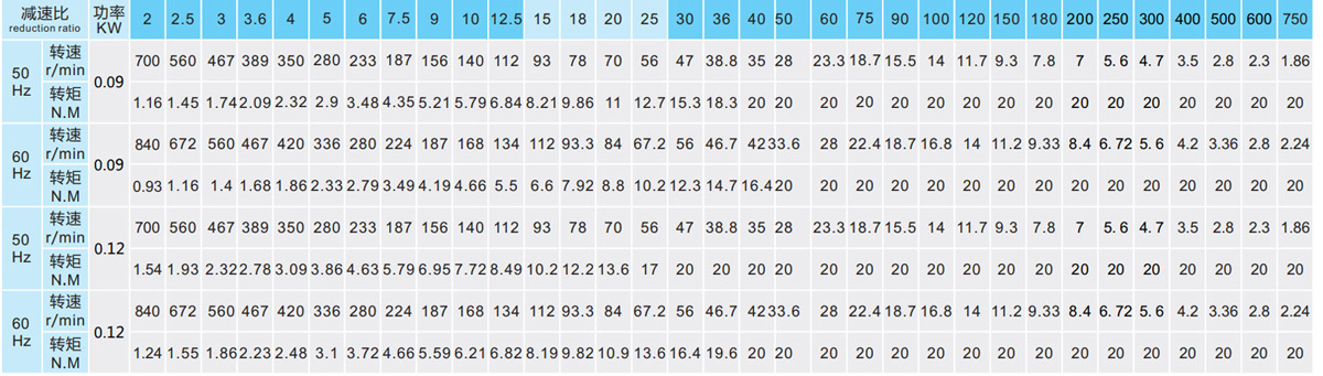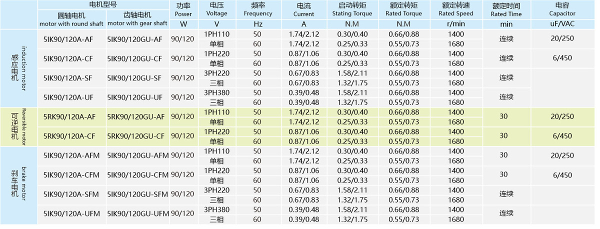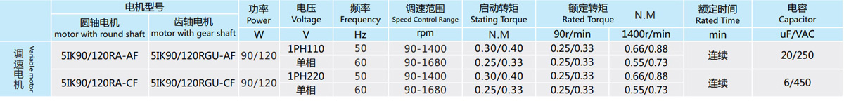 注意:使用电压和机型不同,电容容量不一样,订货时请务必指明具体的型号。 转速是以电动机的异步转速(50Hz:1400r/min、60Hz:1680r/min)为基准除以减速比而算 出来的数值。实际转速将随负载大小变化而有所变化。 需要大于上表的减速比进行进-步减速时,可在电动机与减速器之间安装减速比为1 : 10的中间减速器。 300K以上电机不适合重载场合使用。