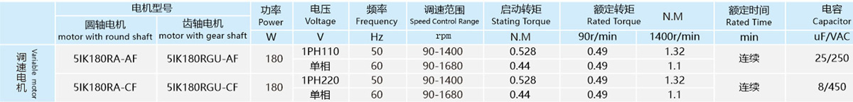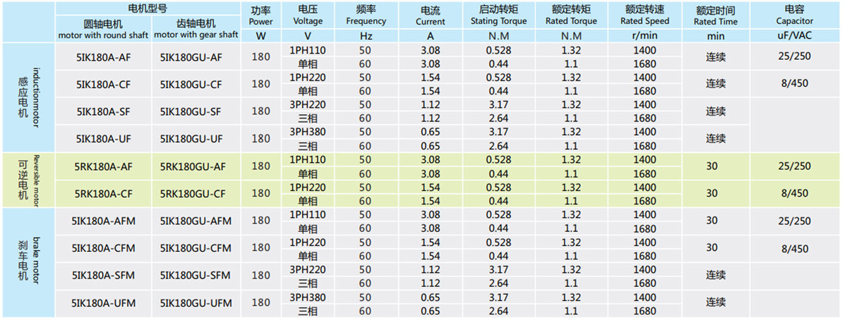 注意:使用电压和机型不同,电容容量不一样,订货时请务必指明具体的型号。 转速是以电动机的异步转速(50Hz:1400r/min、60Hz:1680r/min)为基准除以减速比而算 出来的数值。实际转速将随负载大小变化而有所变化。 需要大于上表的减速比进行进-步减速时,可在电动机与减速器之间安装减速比为1 : 10的中间减速器。 300K以上电机不适合重载场合使用。