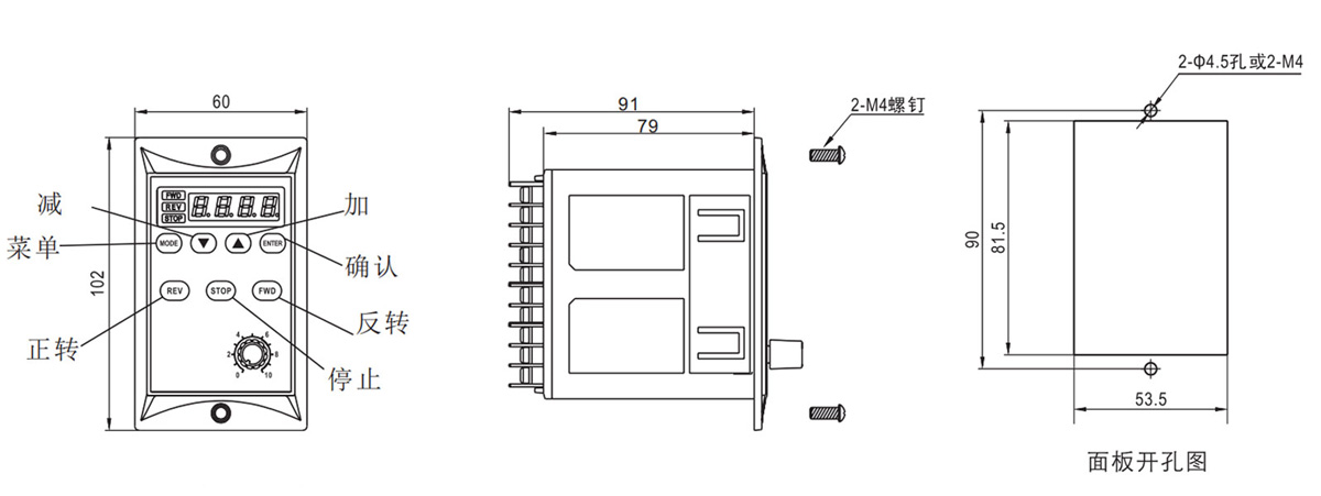 面板旋钮自动匹配最高转速,调速控制方便、安全。