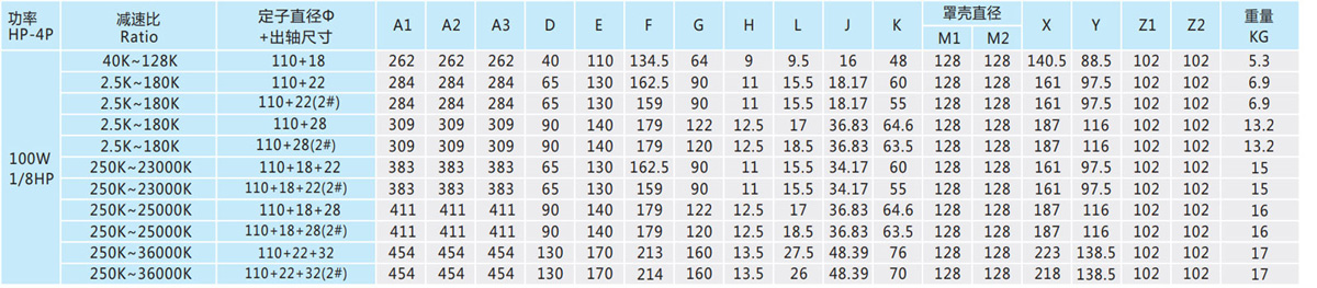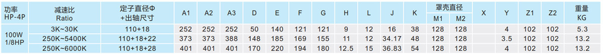 表列转速是基于电机异步转速(50Hz:1400r/min、60Hz:1680r/min),额定负载时,实际转速为表列转速的80%-98%。