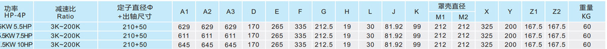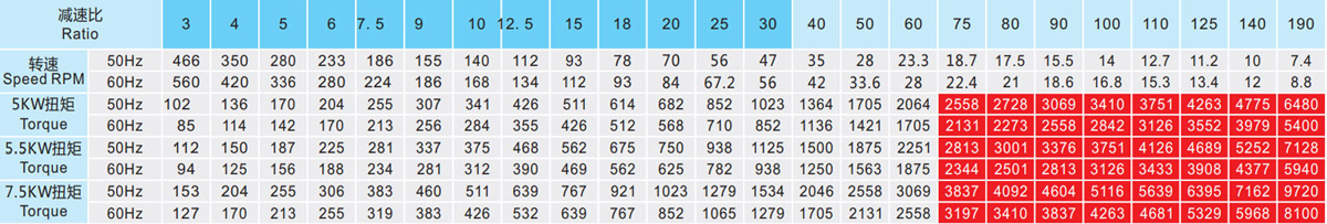 表列转速是基于电机异步转速(50Hz:1400r/min、60Hz:1680r/min),额定负载时,实际转速为表列转速的80%-98%。