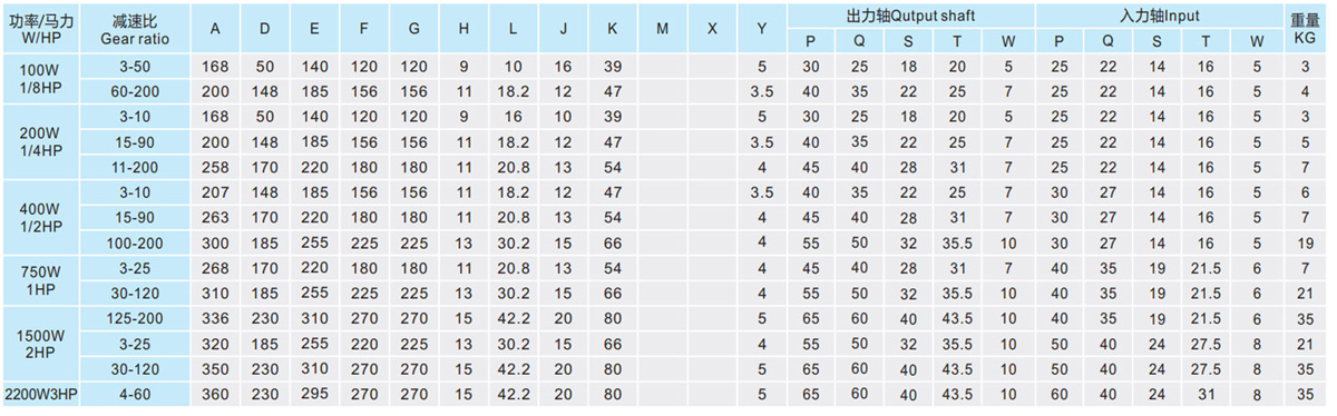 表列转速是基于电机异步转速(50Hz:1400r/min、60Hz:1680r/min),额定负载时,实际转速为表列转速的80%-98%。