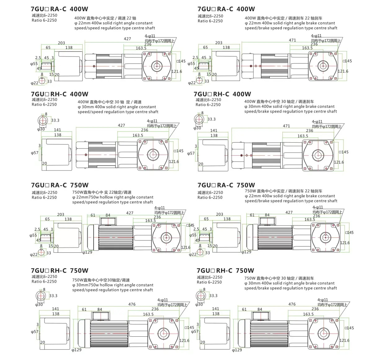 Hollow-Shaft and Solid-Shaft Right-Angle Gear Reducer Motors