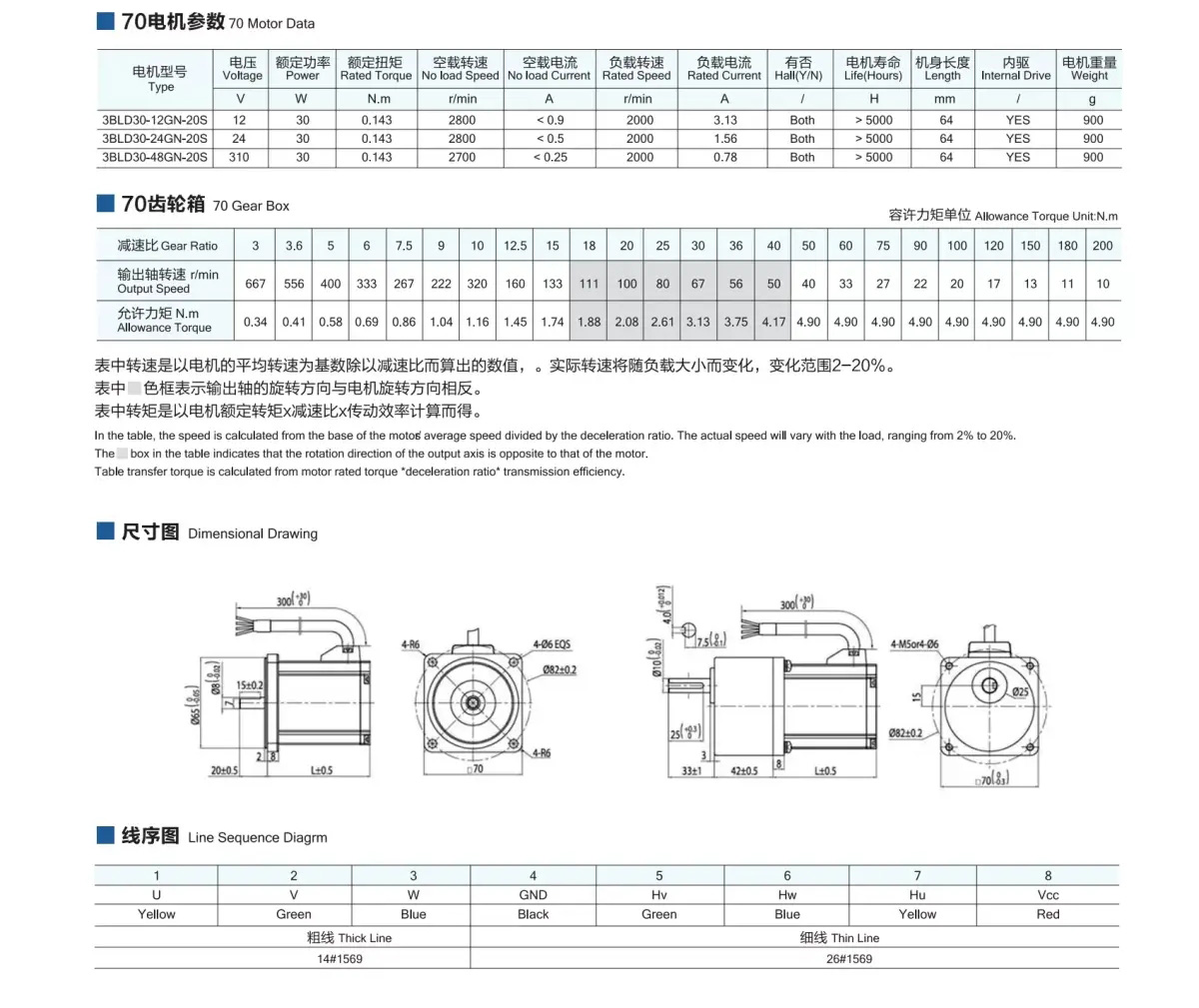KB-Precision DC brushless gear reduction motor type 70