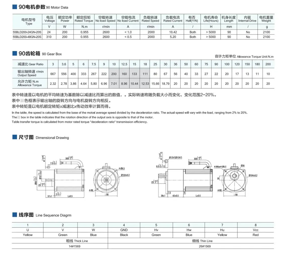 KB-Precision DC brushless gear reduction motor 90 type 200w