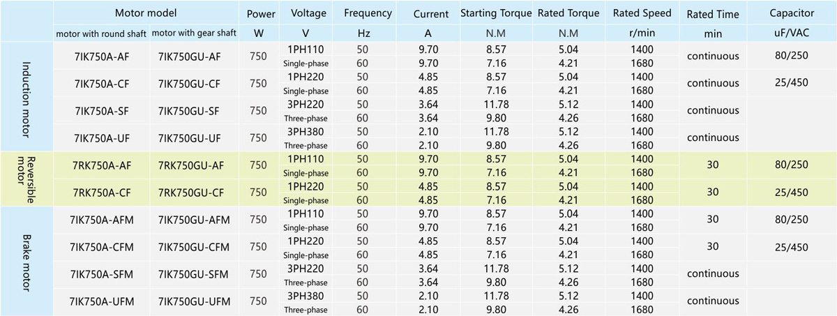 When a reduction ratio larger than the above table is required for step-by-step deceleration, an intermediate reducer with a reduction ratio of 1:10 can be installed between the motor and the reducer.Motors above 300K are not suitable for heavy-duty applications.