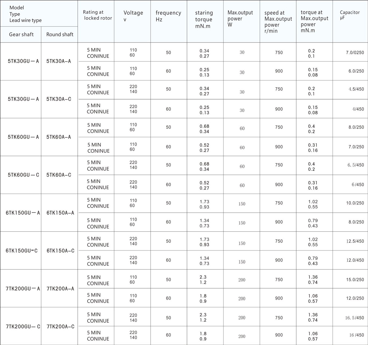 torque power: 30W 60W 150W 200W