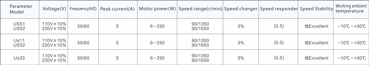 List of speed governor characteristics