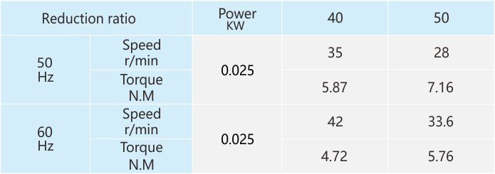 The speed is calculated by dividing the asynchronous speed of the motor (50Hz: 1400r/min, 60Hz: 1680r/min) by the reduction ratio. The actual speed will vary with the size of the load.