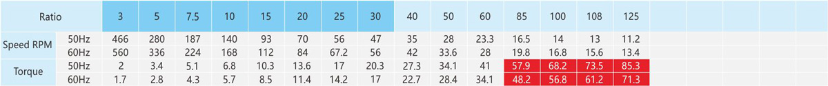 The table speed is based on the asynchronous speed of the motor(50Hz:1400r/min、60Hz:1680/min),the actual output speed under rated torque conditions,is about2-20% less than synchronous speed . 2.Light duty type is not available for standred application design,it is only suitable for special project design.As te-chnical data for these machines may be advantaged, please contact us or visit the company website. 3.The specifications of the product may be modified for improvement without notice.Not allow for publish without formal approved.
