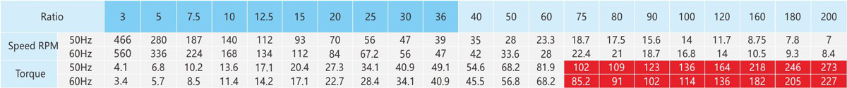 The table speed is based on the asynchronous speed of the motor(50Hz:1400r/min、60Hz:1680/min),the actual output speed under rated torque conditions,is about2-20% less than synchronous speed . 2.Light duty type is not available for standred application design,it is only suitable for special project design.As te-chnical data for these machines may be advantaged, please contact us or visit the company website. 3.The specifications of the product may be modified for improvement without notice.Not allow for publish without formal approved.