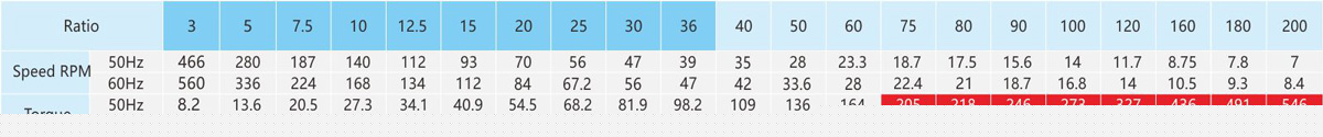 The table speed is based on the asynchronous speed of the motor(50Hz:1400r/min、60Hz:1680/min),the actual output speed under rated torque conditions,is about2-20% less than synchronous speed . 2.Light duty type is not available for standred application design,it is only suitable for special project design.As te-chnical data for these machines may be advantaged, please contact us or visit the company website. 3.The specifications of the product may be modified for improvement without notice.Not allow for publish without formal approved.