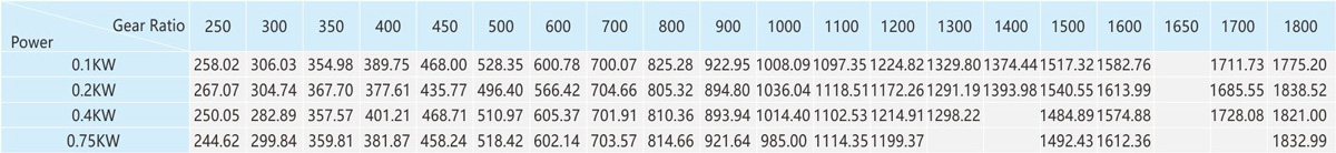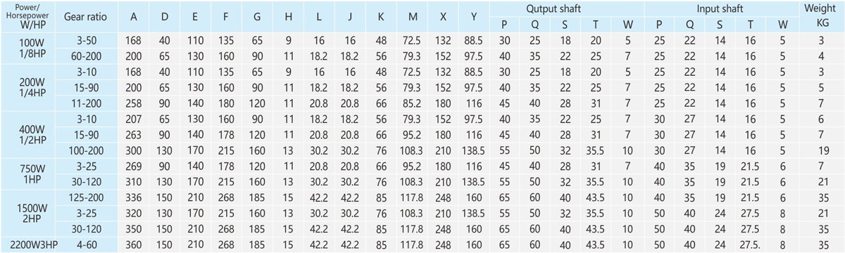 The table speed is based on the asynchronous speed of the motor(50Hz:1400r/min、60Hz:1680/min),the actual output speed under rated torque conditions,is about2-20% less than synchronous speed . 2.Light duty type is not available for standred application design,it is only suitable for special project design.As te-chnical data for these machines may be advantaged, please contact us or visit the company website. 3.The specifications of the product may be modified for improvement without notice.Not allow for publish without formal approved.