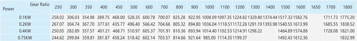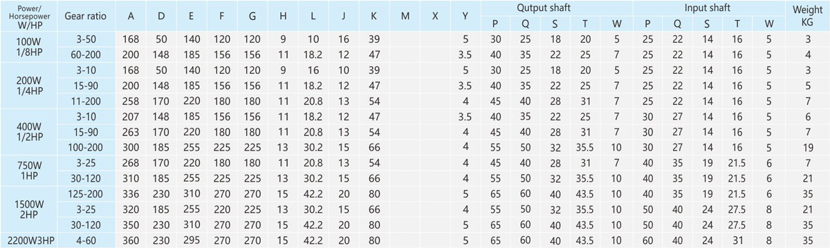The table speed is based on the asynchronous speed of the motor(50Hz:1400r/min、60Hz:1680/min),the actual output speed under rated torque conditions,is about2-20% less than synchronous speed . 2.Light duty type is not available for standred application design,it is only suitable for special project design.As te-chnical data for these machines may be advantaged, please contact us or visit the company website. 3.The specifications of the product may be modified for improvement without notice.Not allow for publish without formal approved.